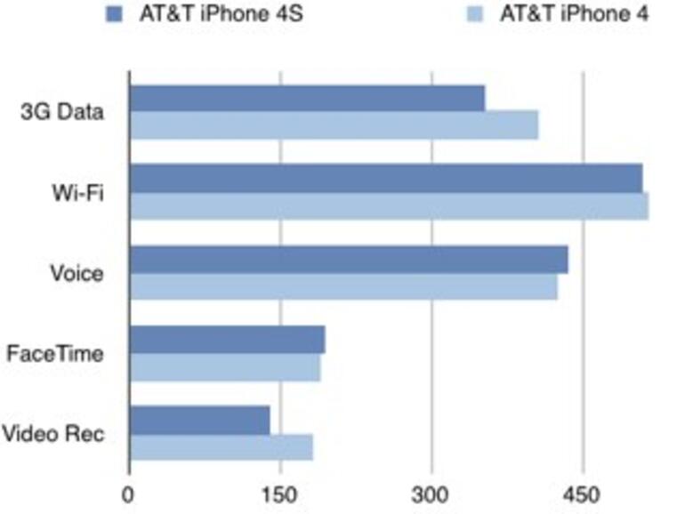 In Sachen Medienwiedergabe und Aufnahme hält das iPhone 4S nicht so lange wie das Vorgängermodell; allerdings ist hier auch die höhere Prozessorleistung des iPhone 4S zu berücksichtigen. Wer also mit dem iPhone 4S lediglich im Web surft und Telefonate führt, der wird in Sachen Batterielebensdauer keinen großen Unterschied zum Vorgängermodell feststellen. Bei allen anderen Anwendungen geht dem iPhone 4S-Akku ein weing schneller der Saft aus.