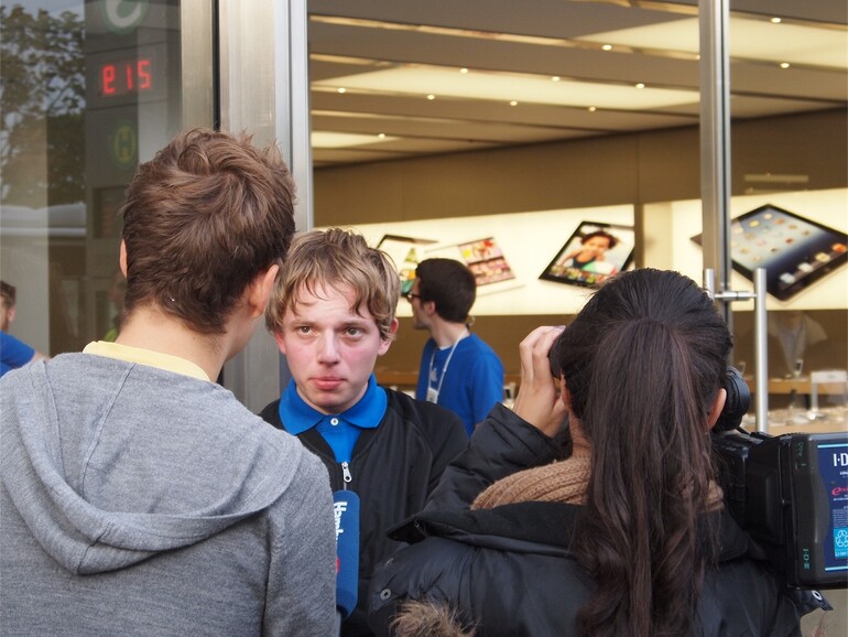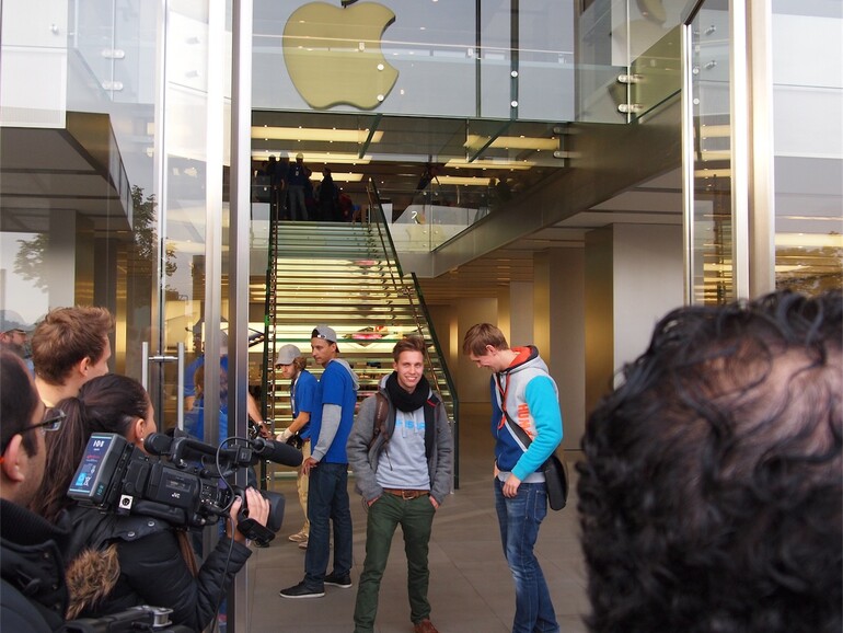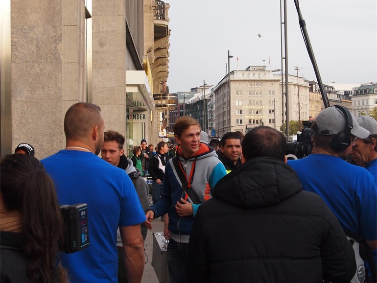 Der Andrang hielt sich zwar, vor allem verglichen mit den offiziellen Verkaufsstarts der letzten Neuheiten der Firma Apple, in Grenzen, unter den Anwesenden spürte man dennoch die Vorfreude. Neben dem Verkaufspersonal des Ladens standen auch Telekom-Mitarbeiter für Fragen zur Verfügung.