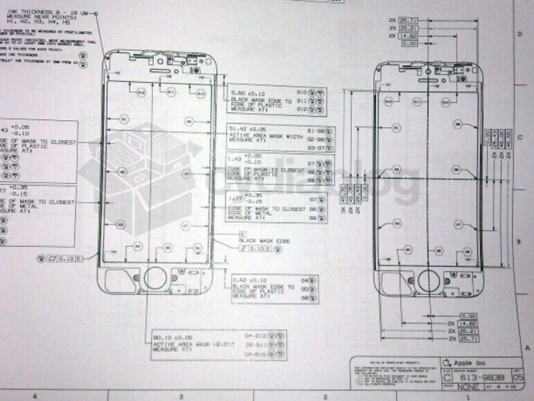 Die heute vom Cydia Blog veröffentlichte Blaupause widmet sich der Vorderseite des angeblich nächsten iPhones und weist auf dieser genug Platz für ein 4-Zoll-Display im Format 16:9 aus. Die FaceTime-Kamera scheint zudem über den Ohr-Lautsprecher zu wandern. Sollte das gereichte Dokument authentisch sein, hat Tim Cook noch einiges vor sich, Industriegeheimnisse künftig noch besser zu wahren als bisher.
