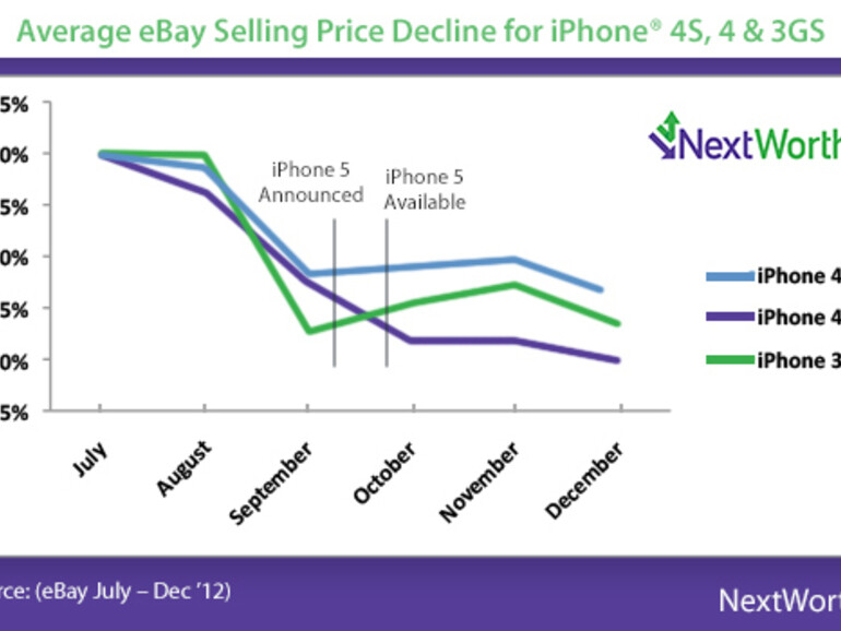 Aktuell steht der 10. September als iPhone 5S-Vorstellungstermin im Raum. Demnach wäre jetzt der richtige Zeitpunkt, sein Gerät noch zu einem akzeptabelen Preis zu veräußern, bevor die Massen an älteren Geräten wie iPhone 4, iPhone 4S und iPhone 5 auf den Markt geworfen werden. Die Preise fielen laut Auswertung im August, also vier Wochen vor der Vorstellung im September, und zwar um gut 20 Prozent. NextWorth CMO Jeff Trachse beschreibt den Fall um bis zu 20 Prozent als typisch für ältere Modelle beim Generationswechsel.