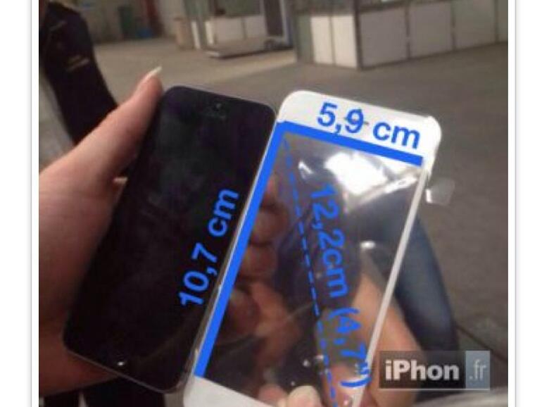 Der Verdacht, dass das iPhone 6 ein größeres 4,7-Zoll-Display bekommt und eventuell zu einem späteren Zeitpunkt sogar mit einem 5,6-Zoll-Display ausgeliefert wird, könnte sich mit der diesmal gezeigten Frontabdeckung des iPhone 6 erhärten. Der direkte Vergleich mit einem iPhone 5s zeigt den Größenunterschied. Gut zu erkennen ist auch die dünnere Einfassung, was sich mit den bislang verbreiteten Gerüchten deckt, dass das iPhone ein schlankeres Design haben wird.