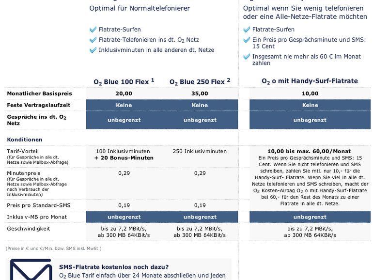 In den O2 Blue Flex Tarifen (normal, nicht als Kombo mit iPhone) bekommt man für den eigentlich jederzeit kündbaren Tarif eine SMS-Flatrate wohl gratis dazu, wenn man sich dafür entscheidet, sich gleich für 24 Monate dran zu binden.