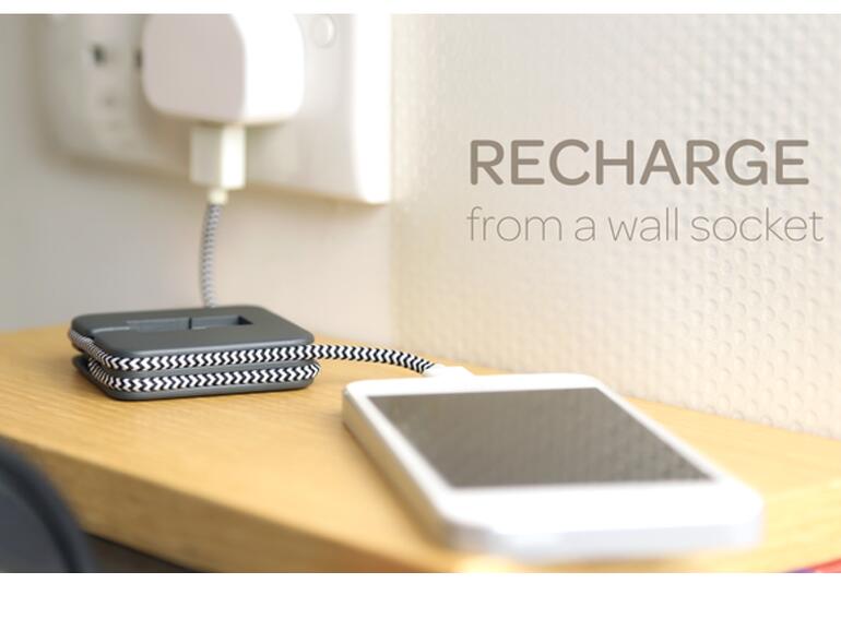 Das besondere an dem Akku: Er besitzt ein intelligentes Ladesystem und eine praktische Vorrichtung zur Aufnahme des Lightning-Kabels. Alternativ gibt es Jump auch für andere Smartphones mit Micro-USB-Anschluss. Ist das iPhone leer, lässt es sich mit Jump neu beladen. Man kann Jump aber auch als Kabelersatz nehmen, um das iPhone zum Beispiel via USB an einen Rechner zu stecken. Erst sobald der Smartphone-Akku voll geladen ist, wird in dem Fall der in Jump integrierte Akku geladen. Jump ist damit recht universell einsetzbar, sowohl unterwegs als externe Stromversorgung, als auch daheim als Lightning-Kabel-Ersatz.