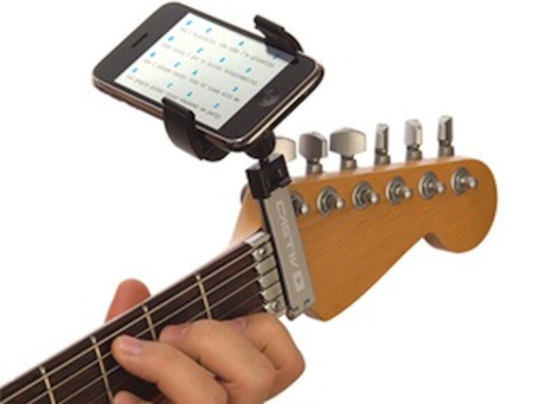 Denn der Sidekick befestigt das iPhone oder andere Geräte (Android, BlackBerry, Zune, PlayStation Portable) am Gitarrenhals. Der Klang soll darunter nicht leiden, nur zur Bedienung empfiehlt sich entweder ein dritter Arm, oder ein langer Stylus, der an die Stirn geklebt wird. Der Hersteller verweist auch gleich auf verschiedene Gitarren-Apps für das iPhone, Kostenpunkt für den Sidekick: 29,99 US-Dollar.