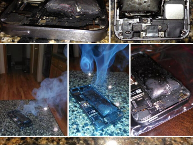 Wo ist denn nun das brennende iPhone? Ich sehe eines Qualmen, Verschmoren ist aber kein Brennen. So sieht jedenfalls kein »brennendes iPhone 5S« aus!