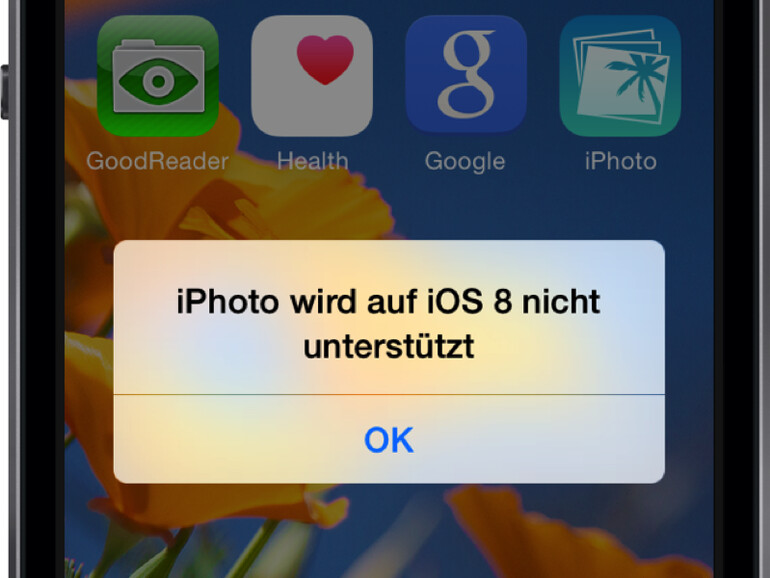 iPhoto für iOS hat kaum Gemeinsamkeiten mit dem Mac-iPhoto. Während letzteres vor allem eine Fotoverwaltung ist, setzt das iOS-iPhoto auf die Bildbearbeitung - und gerade in diesem Bereich hat die Fotos-App unter iOS 8 dazugelernt. Während iPhoto und Aperture aber unter Yosemite zumindest noch gestartet werden können, können iOS-Nutzer ihr iPhoto lediglich installieren - beim Versuch, die App zu starten, kommt jedoch die Fehlermeldung "iPhoto wird auf iOS 8 nicht mehr unterstützt".