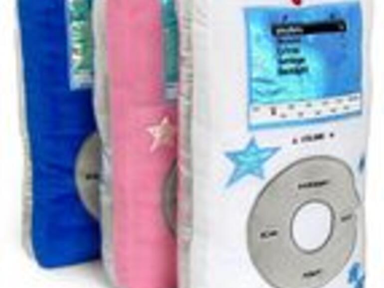 Das iPod-Kissen gibt's in Blau, Pink und Weiß und wird mit zwei AA-Batterien betrieben, die nicht inklusive sind. 13,50 US-Dollar kostet der Spaß.
