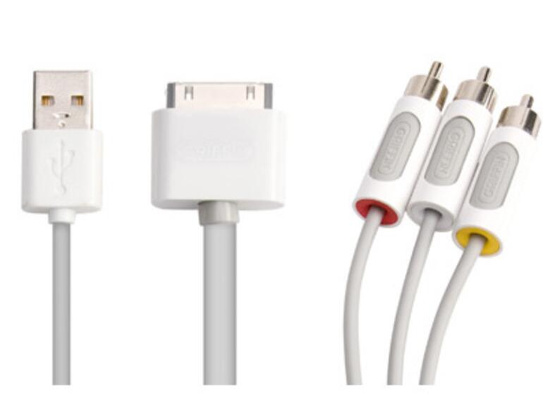 Mit neuen Videokabeln möchte man iPod-Kunden erweiterte Anschlussmöglichkeiten an TV oder Home-Entertainment-Systeme erlauben. Sie sind 1,8 m lang, enthalten Kupfer zur Vermeidung von Störungen und können den iPod mittels im Lieferumfang befindlichen Adapter laden. Die beiden Composite- und Komponenten-Kabel sind farbkodiert und kosten über den US-Online-Shop jeweils knapp 50 US-Dollar. Womöglich findet man sie bald auch in einem Shop hierzulande, obwohl es zum ähnlichen Preis solche Kabel auch direkt von Apple gibt.