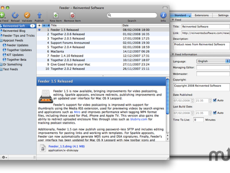 Die neue Version 4.1 bringt nunmehr Unterstützung für Entourage 2008 mit, daneben wurde das Einfangen von RSS-Feeds für den iPod verbessert. Auch die GoogleMail-Unterstützung hat ein Update erfahren, denn nunmehr werden entsprechende Nachrichten direkt in einem eigenen Ordner abgelegt, so dass nicht mehr lokale und GoogleMail-E-Mails wild durcheinandergewürfelt angezeigt werden.