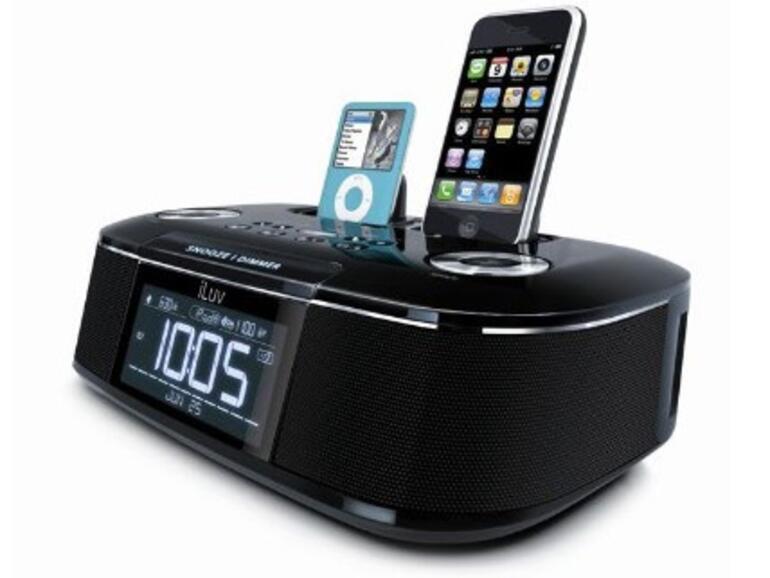 Nun hat auch Zubehör-Hersteller iLuv Interesse an so einer Lösung gefunden und stellte mit dem iMM173 ebenfalls ein Doppeldock vor. Beide Anschlussmöglichkeiten arbeiten unabhängig voneinander und sind mit dem iPhone 3G kompatibel. Der Wecker bietet mit zwei jAura-Lautsprechern zusammen rund 10 Watt Musikleistung, einen Aux-Eingang und eine Fernbedienung.
