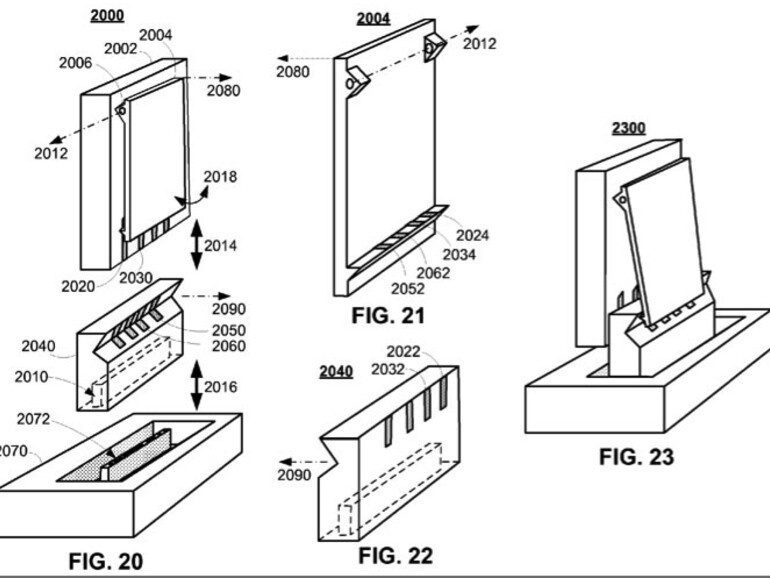 Das Patent beschreibt ein Zusatz, der im Dock und auch an MacBook oder iMac zum Einsatz kommen könnte. Der iPod nano wird daran festgeclippt, so wie man ihn auch an der Kleidung befestigt. In dem neuen Clip ist die Möglichkeit für Datentransfer eingebaut. Dazu soll es auch möglich sein, den nano-Akku aufzuladen.