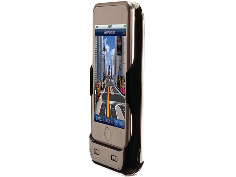 Die Autohalterung beinhaltet nicht nur einen GPS-Empfänger, sondern auch einen Akku, der die Laufzeit des iPod touch verdoppeln soll. Aufgeladen werden kann dieser über einen Mini-USB-Anschluss. Das Verbindungskabel zwischen CarKit und USB-Anschluss ist im Lieferumfang enthalten. Bessere Audio-Qualität soll der eingebaute Lautsprecher bieten – alternativ steht aber auch ein Klinkenausgang für den Anschluss am Autoradio zur Verfügung.