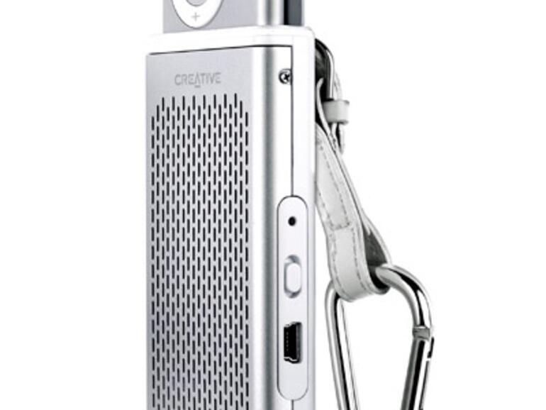 Das Gerät ermöglicht es, den Winzling aufzustecken und die Musik über einen Lautsprecher auch unterwegs in voller Breite zu hören.