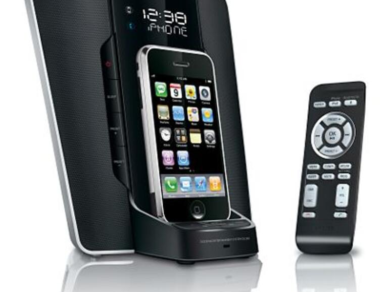 Das schon länger erhältliche iPod-Sound-System iBoom unterstützt nun auch das iPhone. Es zeichnet sich durch einen halbkreisförmig um das Abspielgerät gebauten Lautsprecher sowie durch eine Fernbedienung mit OLED-Display aus. Das aktualisierte iBoom wird für rund 200 US-Dollar zu haben sein.