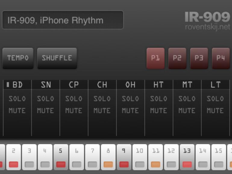 IR-909 ist eine native Anwendung und bietet einen 16-Step-Sequencer, vier Patterns, acht verschiedene Drum-Sounds und einen BPM-Regler. Es ist nicht als Ersatz für eine echte TR-909 gedacht, aber das iPhone dürfte mit der Software zu den tragbarsten Drum-Machines gehören.