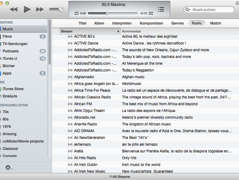 Die Radioliste von iTunes ist ein von Apple verwaltetes Verzeichnis, das sich bis heute hauptsächlich am US-Geschmack orientiert. Eigene Stationen können nicht hinzugefügt werden, sondern werden von iTunes wie ein einzelner Song verwaltet. In iTunes 11 hat Apple das Radio schließlich aus der Seitenleiste verbannt, es taucht nun erst nach einem Klick auf "Musik" auf, obwohl nicht alle der Radiostationen Musik senden.