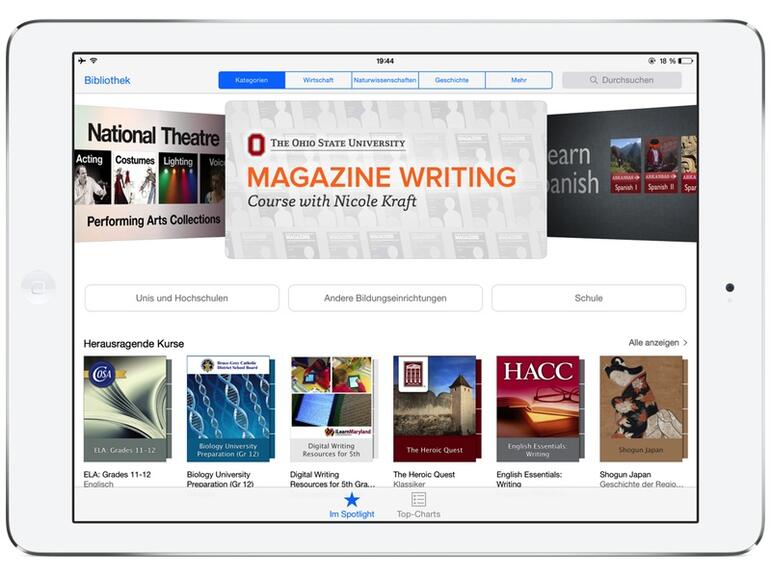 Apple hat das große Updates für iTunes U für den 8. Juli angekündigt. Lehrkräfte und Studenten erhalten damit neue Werkzeuge, um Lerninhalte auf dem iPad zu erstellen und zu erlebbar zu machen. Mithilfe der iPad-App wird es dann möglich sein, komplette Kurse zu erstellen, bearbeiten und zu verwalten.