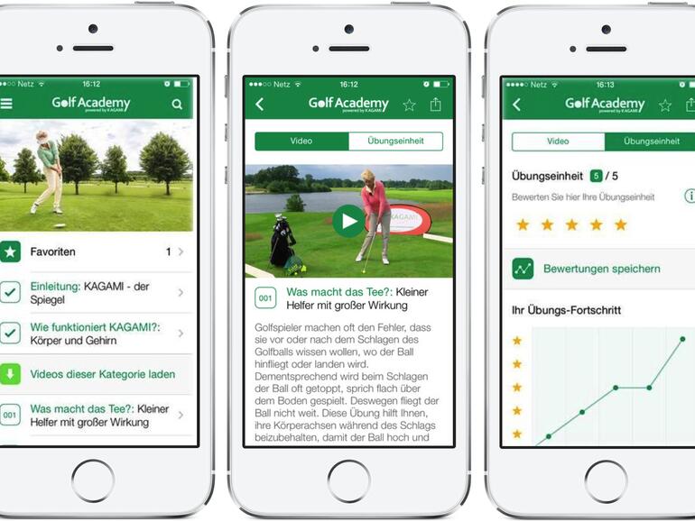 Golf Academy powered by KAGAMI ist für das iPhone konzipiert und benötigt mindestens iOS 7. Einige Funktionen benötigen einen Internetzugang. Die Übungs-Videos können alle auf das iPhone herunter geladen oder gestreamt werden.