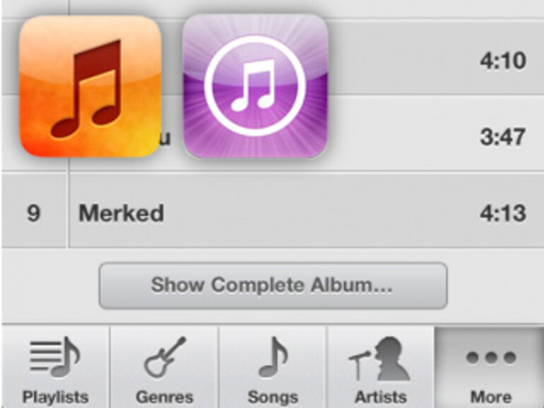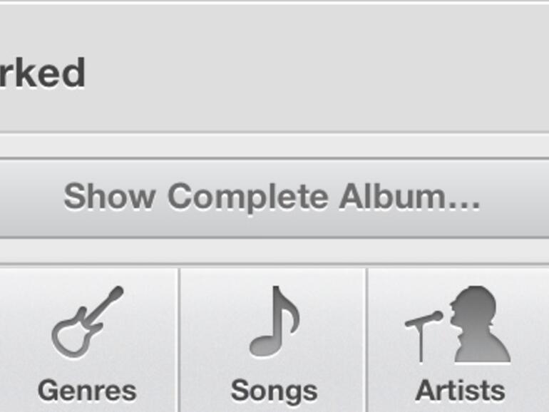 Sofern ein Album auf einem iOS-Gerät nur teilweise vorhanden ist, blendet iOS einen Link in die Musik-App ein um auch die restlichen, noch nicht gekauften Titel anzuzeigen. Die fehlenden Titel lassen sich im Anschluss direkt und ohne Umweg über die iTunes-App kaufen unter herunterladen.
