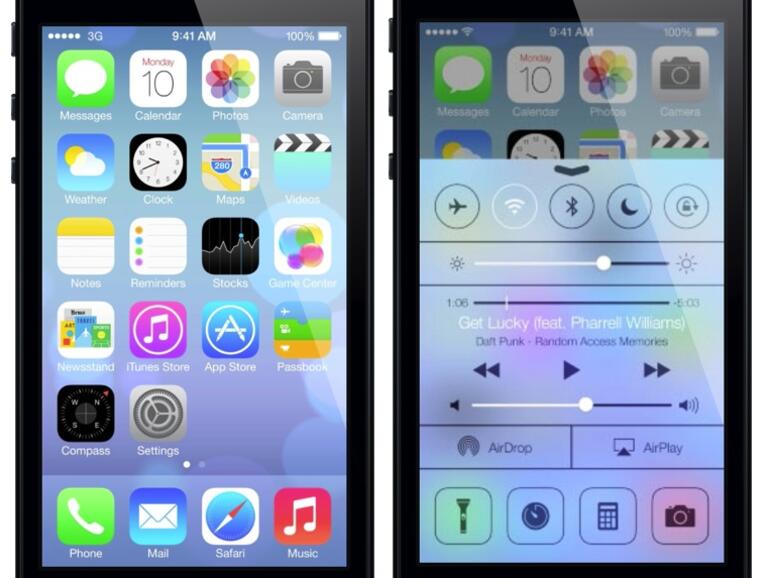 Einer der größten Neuerungen ist das neue Kontrollzentrum, das sich analog zur Nachrichtenzentrale mit einem Wisch vom unteren Bildschirmrand in Richtung Bildmitte aufrufen lässt. Hier hat Apple nicht nur eine Abkürzung zur Aktivierung und Deaktivierung von Flugzeugmodus, WLAN, Bluetooth, Nicht-stören-Modus und Verriegelung der Bildschirmausrichtung geschaffen, sondern auch die ehemals im Multitasking-Menü ansässigen Steuerungen für Helligkeit, Ton, Musik und AirPlay. Zudem kann im Kontrollzentrum auch mit einem Tipp der LED-Blitz als Taschenlampe aktiviert werden.