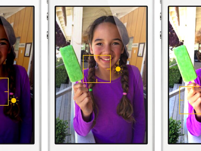 Eine weitere Neuerung ist die unabhängige Steuerung von Fokus und Belichtung. Wie bisher sind Belichtung und Fokus durch längeres Drücken auf einen Bildausschnitt feststellbar. In iOS 8 ist aber auch eine zusätzliche Steuerung der Belichtung möglich, indem mit dem Finger nach oben für ein helleres Bild oder nach unten für ein dunkleres Bild gewischt wird.