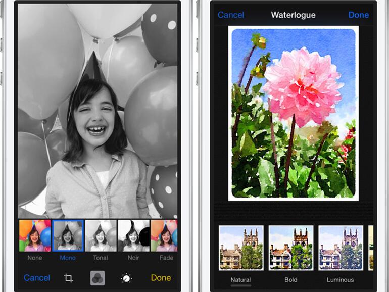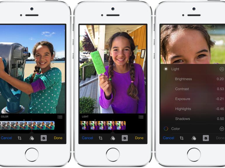 Außerdem lassen sich Belichtung und Farbe nicht nur wie bisher automatisch anpassen, sondern auch auf eine neue intelligente Art und Weise. Denn in iOS 8 ein Schieberegler enthalten, der Licht und Farbe durch Veränderungen von Helligkeit, Kontrast, Belichtung, Highlights und Schatten verändert. Profis bietet Apple aber auch die Möglichkeit, diese Werte manuell zu justieren.