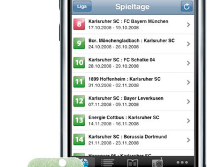 Fußball-Fans aufgepasst - mit der derzeit (bis zum nächsten Update) 0,79 Euro kostenden Anwendung iLiga 08/09 steht auf dem iPhone der komplette Bundesliga-Spielplan bereit (iTunes-Link). Einfach den Lieblingsverein auswählen und schon weiß man über den Stand der Dinge bescheid. Grafisch schön aufbereitet mit den Farben der Vereins-Trikots behält man so die Übersicht über die aktuellen Spielstände. Wer zudem die Spiele live miterleben möchte, kann über den Punkt "Radio" die Livestreams der unterschiedlichen Radiosender wie WDR, Bayern 1 oder Bremen 1 empfangen. Parallel dazu bietet die App die Halbzeitstände und Torschützen an. Allerdings lässt sich auf diese Weise nur die erste Liga einsehen.