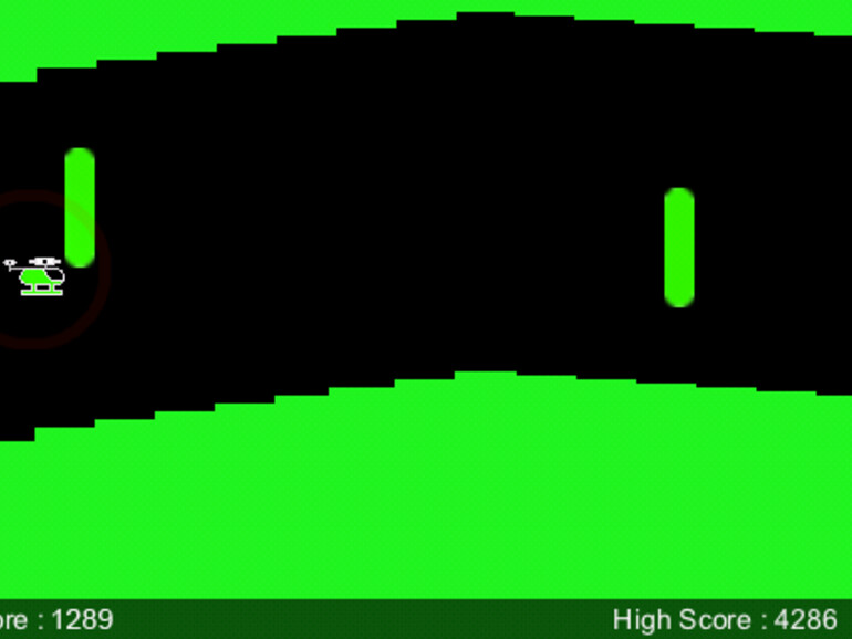 Das Prinzip ist einfach: Ein verpixelter Hubschrauber fliegt durch einen Hindernisparcours und muss in der Luft hängenden Mauern ausweichen, ohne dabei an die Decke zu stoßen oder den Boden zu berühren. Gesteuert wird durch einfaches Tippen auf den Bildschirm, wodurch sich der Heli nach oben bewegt. Berührt man das Display nicht, verliert der Hubschrauber schnell an Höhe. In den iPhone-Einstellungen kann man aus zwei Helikopter-Stilen wählen, die Farben der Hindernisse ändern und einen Helligkeitsverlauf des Hintergrunds einschalten. Dieses Spiel (iTunes-Link) darf auf keinem iPhone oder iPod touch fehlen! (jr)
