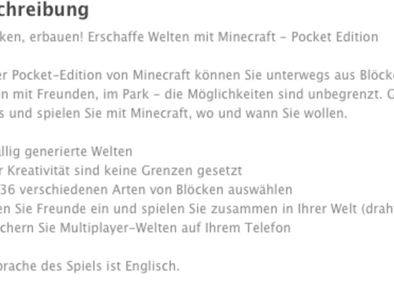 Man kann kein vollwertiges Konsolen/PC-Spiel mit einem Spielzeugapp vergleichen. Zudem finde ich die 5,49€ überzogen. Es sollte eher eine Zugabe sein, wenn man das (jetzt nach der Beta) vollwertige Minecraft kauft.