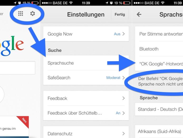 Vor geraumer Zeit hatte Google während einer Präsentation „OK Google“ vorgestellt - eine Möglichkeit, eine Google-Suche per Sprachsteuerung zu beginnen. Diese Funktion ist nun auch in der iOS-App eingebaut, allerdings funktioniert sie derzeit nur, wenn man sein iPhone oder iPad mit englischen Sprachanfragen füttert und die Standard-Sprache am Gerät selbst auf Englisch eingestellt ist.