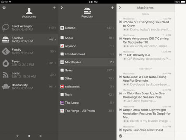 Mit der Deaktivierung von Google Reader am 1. Juli dieses Jahres hatte der Suchmaschinen-Gigant viele Entwickler vor die Herausforderung gestellt, andere Dienste als Google Reader in ihre Apps zu integrieren. Silvio Rizzi, der Entwickler hinter Reeder, reagierte darauf durch die flinke Integration von Feedly und der Möglichkeit, auch lokal auf dem iPhone RSS-Feeds zu abonnieren. Die iPad-Version stellte Rizzi hingegen ein, um sich nach eigener Aussage besser auf eine komplette Überarbeitung von Reeder als Universal App kümmern zu können.