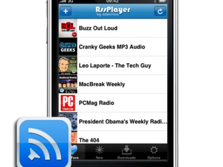 Ausschließlich zum Abonnieren von Podcasts ist der "RSS Player" (iTunes-Link) geeignet, der dem iTunes-WiFi-Store die Funktion voraus hat, nicht der 10-MB-Beschränkung zu unterliegen. Wenig komfortabel gestaltet sich die Eingabe des Podcast-Feeds, da diese nicht automatisch ermittelt werden können. Die Anwendung kostet 3,99 Euro, ist 0,4 MB groß und liegt in Version 1.1 vor.