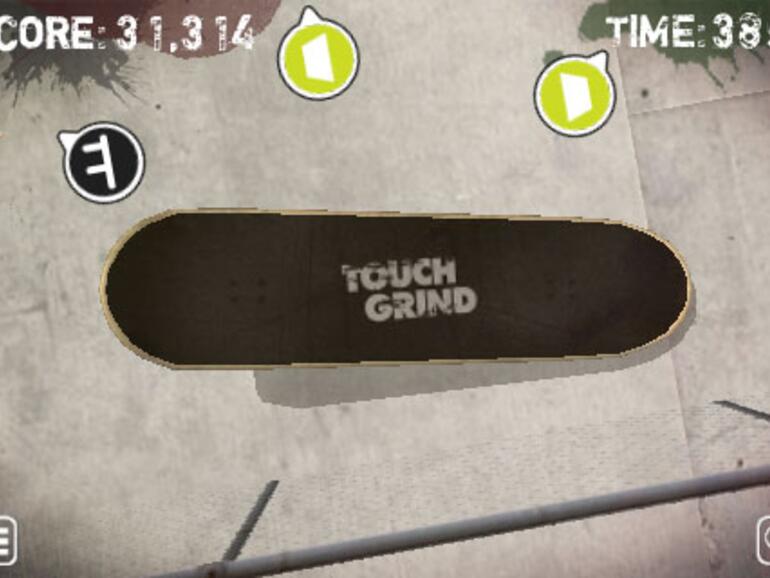 Touchgrind hat sich der Nachbildung "der Bretter, die die Welt bedeuten" verschrieben: Nein, nicht von der Bühne am Theater ist hier die Rede, sondern von hippen Skateboards. Das Spiel bietet die Essenz von Skateboard-Spielen wie der Tony-Hawk- und der Skate-Serie für die Hosentasche, denn bei Touchgrind kommt es allein auf die eigene Fingerfertigkeit beim Umsetzen der zahlreichen möglichen Tricks an: Zeige- und Mittelfinger ersetzen die beiden auf dem Deck stehenden Füße, in Abhängigkeit der ausgeführten Bewegungen legt man einen "Ollie", einen "Kickturn" oder einen anderen beindruckenden Trick in dem mit Rampen und Rails gespickten Skatepark hin.