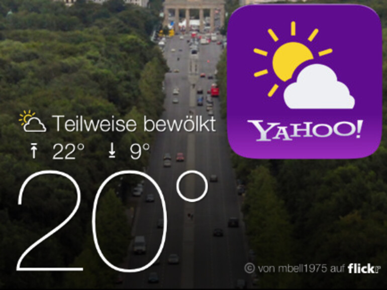 Bei „Yahoo! Weather“ ist es dem Unternehmen gelungen, zwei der wenigen verbleibenden Dienste – die Wettervorhersage und den Foto-Dienst flickr – auf eine fantastische Art und Weise zu kombinieren. Denn Yahoo! Weather passt das Hintergrundfoto der aktuellen Wetterlage an, um die Vorhersage optisch zu unterstreichen. Möglich ist dies aufgrund der GPS-Daten der flickr-Bilder sowie dem Aufnahmezeitpunkt eines Fotos, das Yahoo mit seiner Wetter-Datenbank abgleichen kann.