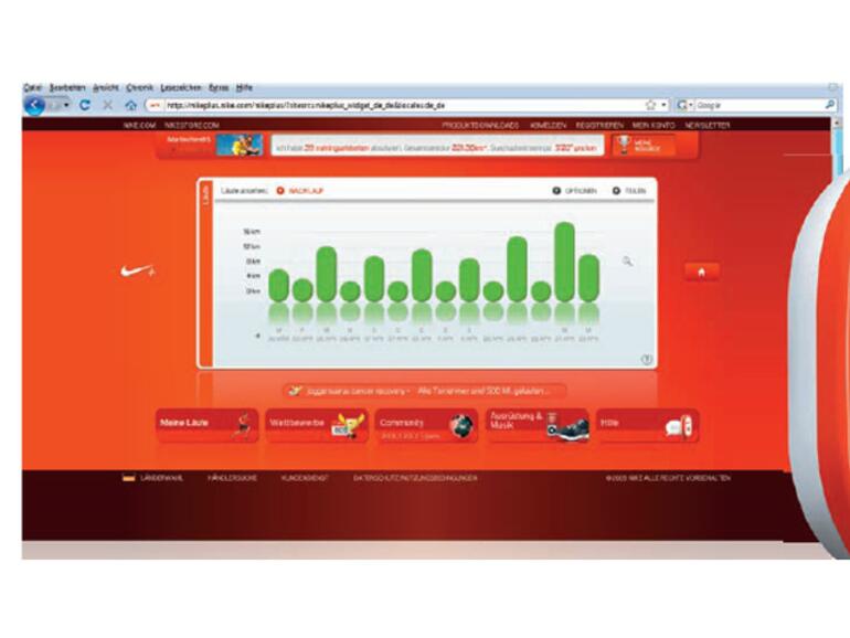 Senden Sie Ihre Daten stets an die Nike+ Homepage, bekommen Sie Ihr Läuferleben in Zahlen ausgespuckt, wenn Sie sich dort einloggen. Alle bisherigen Läufe stehen in verschiedenen Statistiken zur Auswertung bereit. Gute Vorsätze und Ziele können geplant werden. Ein erfolgreicher Abschluss wird mit verschiedenen Medaillen belohnt.
