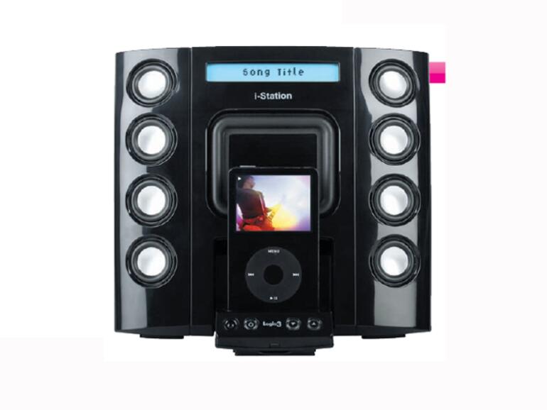 Im Zusammenhang mit dem interessanten Design des Lautsprechersystems weiß die i-Station8 also zunächst durchaus zu beeindrucken. Das Gerät ist kompatibel mit allen iPods, ältere Modelle ohne Dock- Anschluss werden mit einem beigelegten Audiokabel verbunden.