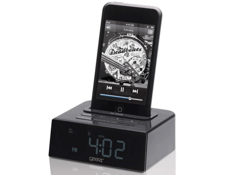 Der kleine iPod-Kompagnon von Gear4 leistet darüber hinaus alles, was von einem solchen Gerät erwartet werden kann: Er verfügt über einen integrierten FM-Tuner mit fünf programmierbaren Stationstasten für den Radioempfang, Schlummerfunktion und Weckintervall sowie einen AUX-Port zum Anschluss von iPod shuffl e oder anderen MP3-Playern.