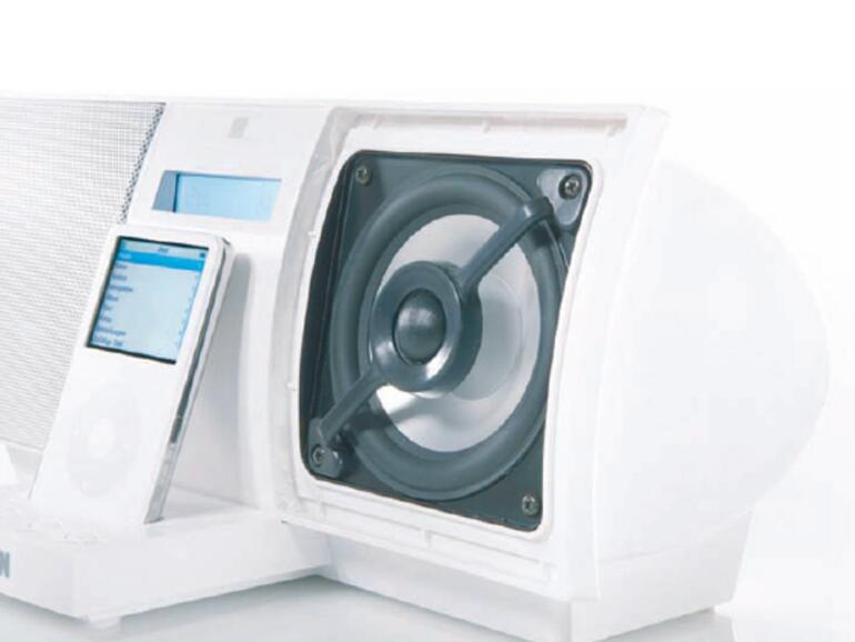 Weiterhin fi ndet man in der Verpackung des Canton DSS 303 eine Fernbedienung, ein Line-In-Kablel, sieben Dock-Adapter sowie eine Wurfantenne für besseren Radioempfang. Neben besagten integrierten UKW-Radio verfügt das Canton DSS 303 über eine Weckfunktion, die mit iPod oder Radio in Anspruch genommen werden kann. Von seinen Grundvoraussetzungen her ist das Lautsprechersystem also mit dem ebenfalls in dieser Ausgabe besprochenen Tivoli iYiYi zu vergleichen. Beide Geräte verfügen über ähnliche Funktionen, sind gleich kostenintensiv und werden von traditionellen Audiofi rmen hergestellt. Ergebnis? Wer die Anlage gern mal aufdreht und zudem bassintensiven Rock oder Hip-Hop bevorzugt, sollte zum Canton DS 303 greifen. Hier steckt mehr Power drin, was allerdings ein wenig auf Kosten eines differenzierten Klangbildes geht.