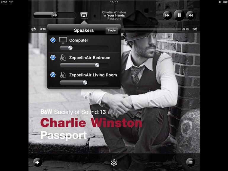 Das B&W Zeppelin Air kann als AirPlay-fähiges Ausgabe-Gerät Inhalte von iTunes wiedergeben. Zeppelin Air kann zudem drahtlos vom iPod touch, iPhone oder iPad im gleichen W-Lan angefunkt werden. Ein iOS-Gerät kann jedoch nur einen Stream an eines von mehreren AirPlay-Geräten bedienen. Nicht zuletzt sehen die AirPlay-Spezifikationen vor, dass die Lautstärke global gesteuert wird. Regelt man am Zeppelin-Lautsprecher ab, wird diese Änderung an iTunes zurückgegeben. Die Lautstärke mehrerer Devices kann zentral von iTunes aus eingestellt werden. So kann in mehreren Räumen die jeweils passende Lautstärke gewählt werden. Für diesen Effekt benötigt man mindestens zwei Zeppelin Air. Ab zehn Zeppelin Air wird im Übrigen die Verkabelung empfohlen.