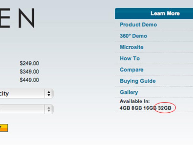 Bis vor kurzem wurde da das Gerät mit 32GB-Speicher gesichtet, berichtet ein Nutzer in einem Fanseiten-Forum. Der Eintrag auf der Creative-Webseite ist nun aber schon wieder verschwunden. Ist das mögliche Beweisfoto nur ein Photoshop-Fake oder doch mehr? Schwer zu sagen. Es könnte sich dabei auch um einen Eintrag handeln, der noch nicht sichtbar sein sollte. Es darf gerätselt und spekuliert werden ...