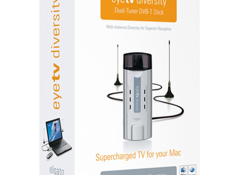 Bei Messungen konnte EyeTV Diversity, laut Pressemeldung, im Diversity-Modus einen guten Empfang in 95 Prozent aller Locations innerhalb eines geschlossenen Wohnraums erreichen, verglichen mit 67 Prozent bei einer herkömmlichen Lösung. Dabei wurde die Empfangsqualität des TV-Signals gleichzeitig um bis zu 50 Prozent verbessert. Auch unterwegs macht der ultrakompakte Empfänger eine gute Figur: Im Aluminium-Look mit den beiden Mini-Stabantennen passt EyeTV Diversity ideal zum MacBook, mobiler DVB-T-Empfang bei Geschwindigkeiten von bis zu 160 km/h ist unterwegs möglich, DVB-T-Versorgung entlang der Wegstrecke natürlich vorausgesetzt.