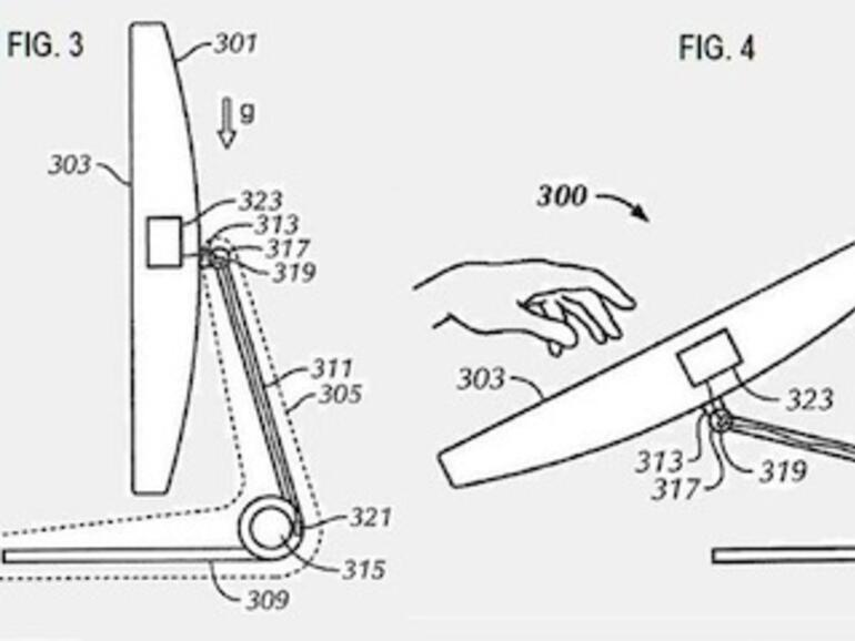 Die abgebildete gelenkige Bauart des iMacs, die das Display in Greifreichweite holt, böte direkte Fingersteuerung. Da ein solcher Rechner als Hybrid für andere Anwendungen allerdings besser mit Maus und Tastatur oder gewichteter Klaviatur und Drehreglern zu bedienen wäre, sollte der Touch-Modus an- und abschaltbar sein. Das dachte sich auch Apple und reichte als Patentantrag eine leicht zu implementiere und kostengünstige Chipsteuerung ein, die genau dieses Umschalten ermöglicht.