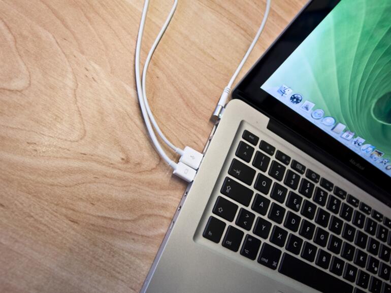 mit Ladekabel (MagSafe) für Notebooks. Und Mini Display Port ist der künftige Standard