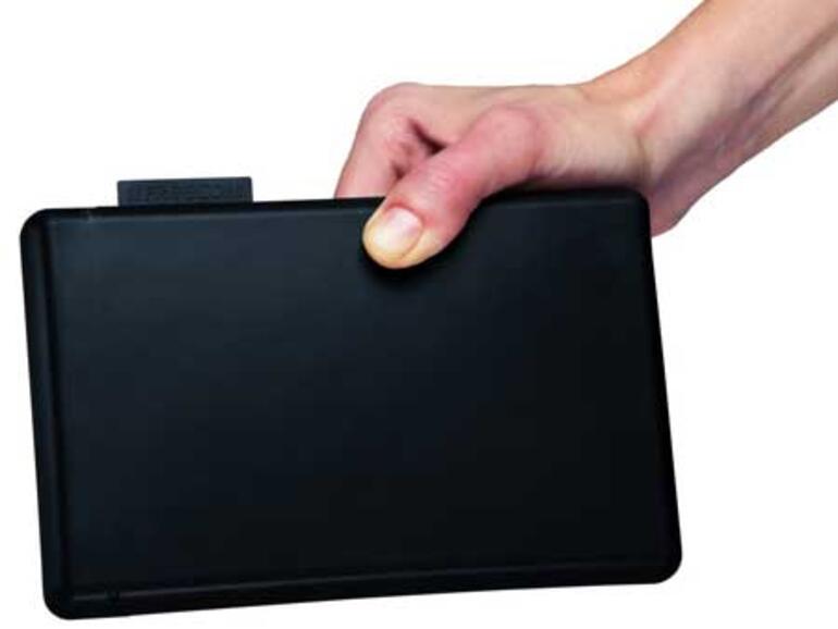 Die glatte Oberfläche des "Hard Drive XS 3.0" ist mit einem eng anliegenden Gummiüberzug versehen, der Funktionalität mit gefälligem Aussehen vereinigt und für gute Griffigkeit, Kratzfestigkeit sowie Vibrationsfreiheit sorgt. Das Peripheriegerät kommt ohne Lüfter aus, so dass es im Betrieb praktisch geräuschlos arbeitet. Bei einem Gewicht von lediglich 860 Gramm ist auch der Transport bequem möglich. Die eingebaute Festplatte dreht sich mit 5400 Umdrehungen, um die Energiezufuhr über den USB-Anschluss zu minimieren.