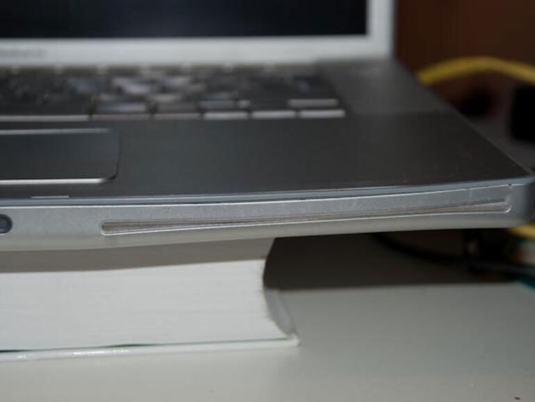 Natürlich kam das Apple-Notebook nicht gänzlich unbeschadet davon (Foto: macbidouille.com). "Der Monitor ist angeknackst, das Gehäuse verzogen und das DVD-Laufwerk ist hin", berichtet der Hardmac-Leser. Doch ebendiese Nachricht schrieb er noch mithilfe des überrollten Geräts. Ein Beweis von Materialfestigkeit, den aktuelle Unibody-Modelle erst noch zu erbringen haben. Nur nach Möglichkeit nicht durch versehentliches Überfahren, sondern in einer kontrollierten Test-Umgebung und mit dem Einverständnis des jeweiligen Eigentümers.