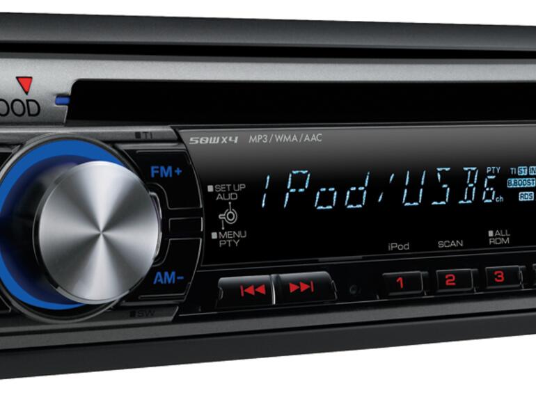 Das Kenwood KDC-W4544U ist nicht nur ob des Preises recht attraktiv, auch die Funktionsvielfalt kann sich sehen lassen. Der USB-Receiver hat einen Aux- sowie einen "1-Wire iPod" Direktanschluss, über die iPods mit Dockanschluss verbunden und mit Strom versorgt werden können. Bedient werden können die Geräte wahlweise über den Drehregler oder direkt über den iPod/das iPhone. Einzig eine integrierte Freisprechlösung fehlt, die zu diesem Preis wohl aber auch nicht erwartet werden kann. Per Adapter kann diese zwar nachgerüstet werden, allerdings lässt die Sprachqualität noch deutlich zu Wünschen übrig. Davon abgesehen erscheint das Modell dennoch als eine günstige Lösung für alle, die ihren Wagen nicht komplett umrüsten wollen.