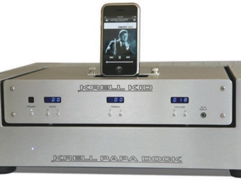 Das Gerät passt sich mit seinem robusten Design im Alu-Look gut in das weitere Krell-Sortiment ein. Bequem findet das KID in der dafür vorgesehenen Mulde Platz. Das Papa Dock merkt, wenn ein iPod den Weg in die Schale auf der Oberseite des KID findet und schaltet sich automatisch ein. Wer die schlichte Aufmachung mag und noch nach einer Abspielmöglichkeit für den iPod im Wohnzimmer sucht, muss tief in die Tasche greifen. Auf den Krell-Webseiten ist zwar bisher keine Information zu dem Gerät zu finden. Lukas Gilkey von den Audiojunkies konnte allerdings bereits berichten, dass es sich von 1.500 Euro für den KID sowie weiteren 2.500 Euro für das Papa Dock zu trennen gilt.