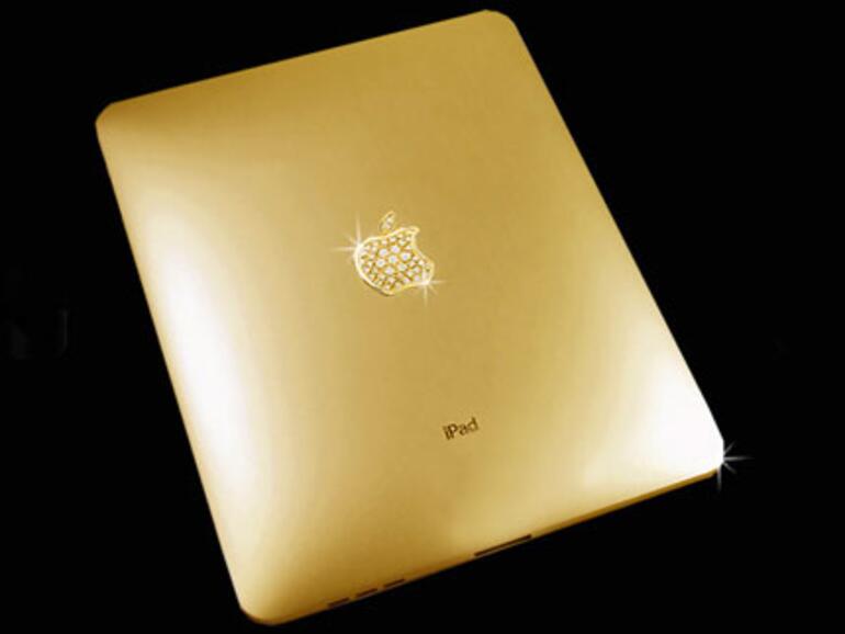 Die Devise beim Entwurf des neuen iPad-Kleides muss "Nicht Kleckern, sondern klotzen" gelautet haben, denn es handelt sich nicht um eine vergoldete Aluminiumrückseite, die hintere Gehäuseabdeckung ist aus 22 Karat Gold gemacht, das 2100 Gramm auf die Waage bringt. Das Apple-Logo wird von 53 Diamanten mit insgesamt 25,5 Karat gebildet. Dass es sich um das iPad Wi-Fi + 3G mit 64 GB handelt, ist in diesem Zusammenhang kaum noch einer Erwähnung wert. Das Ganze ist mit 129.999 Pfund Sterling (umgerechnet rund 151.550 Euro) nicht gerade ein Schnäppchen, einer gewissen Exklusivität dürfte man sich aber in jedem Fall sicher sein.