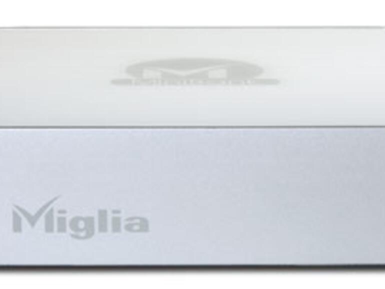 In den Varianten 320 (175 Euro) und 500 GB (234 Euro) mit FireWire- oder USB-Schnittstelle (2.0) erhältlich, dient sie gleichzeitig als Hub und rauscht mit 7200 rpm über die Platte. Damit diese Größe greifbar wird, steht auf der Miglia-Website, wie viele Songs, Filme und Fotos auf die Festplatten passen. Wer tatsächlich 220000 Fotos speichert und die auch noch mit iPhoto verwalten will, sollte aber auch mit 7200 rpm, sehr, sehr geduldig sein.