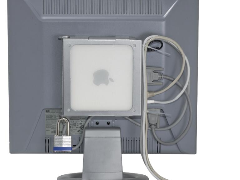 Für die Montage werden die an den meisten Monitoren vorhandenen VESA-Schrauböffnungen sowie die im Lieferumfang enthaltenen Schrauben genutzt. Um das Gerät unter dem Schreibtisch oder an anderen Oberflächen anzubringen, liefert Sonnet eine praktische Bohrschablone sowie spezielle Holzschrauben.